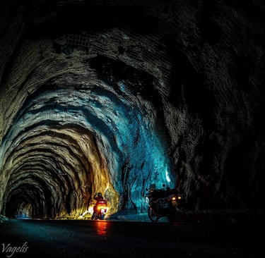 Ο δρόμος σα φίδι γλιστράει ανάμεσα στις πλαγιές των βουνών...
