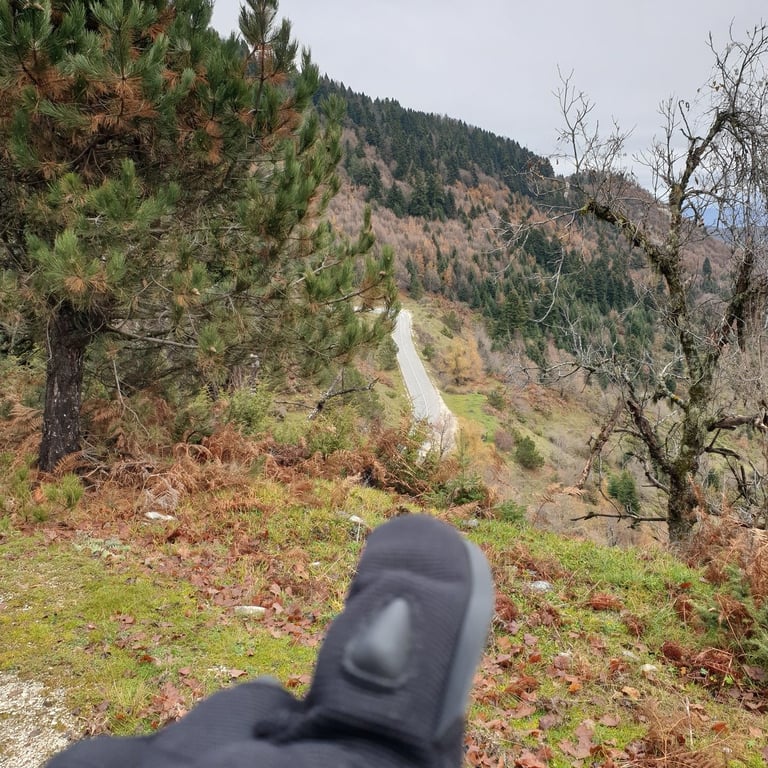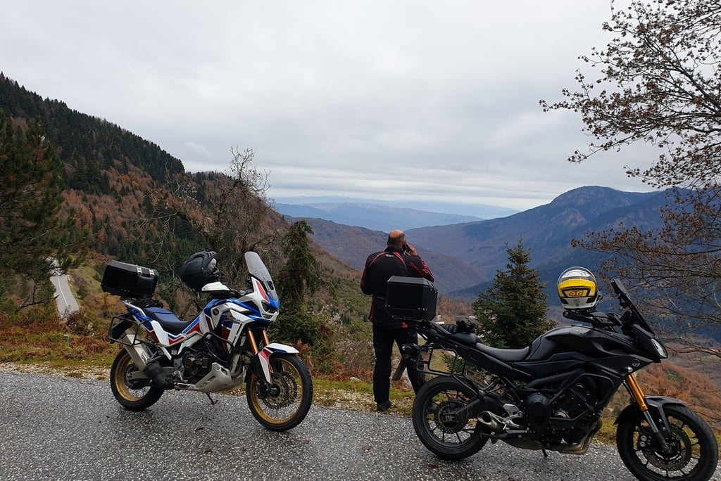 Ο δρόμος άρχισε να στενεύει και να ανηφορίζει γλυκά. Η Africa Twin 1100 «γουργούριζε» με ικανοποίηση καθώς το υψόμετρο ανέβαινε, ενώ ο Γιάννης δίπλα μου με το Tracer φαινόταν να απολαμβάνει κάθε στροφή. Η Καστανιά μας περίμενε, αλλά το μυαλό μας ήταν ήδη στο Χαλίκι και στο παγωμένο πέρασμα που μας έκλεινε το μάτι από μακριά.