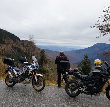 Τα μοτοσυκλετιστικά ταξίδια δεν είναι απλώς μετακίνηση από το σημείο Α στο σημείο Β. Είναι η αίσθηση της απόλυτης ελευθερίας που νιώθεις όταν ο αέρας χτυπά το κράνος σου και ο δρόμος ξετυλίγεται μπροστά σου σαν μια υπόσχεση. Είναι αυτή η μοναδική σύνδεση με το περιβάλλον· δεν βλέπεις το τοπίο μέσα από ένα τζάμι, είσαι μέρος του. Νιώθεις τη μυρωδιά του ελάτου, την παγωνιά του νερού και την υγρασία του πάγου στο δέρμα σου.