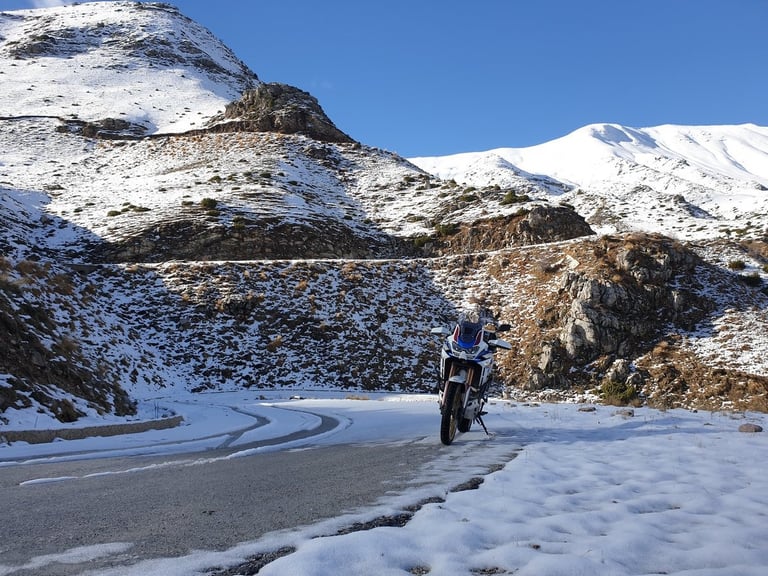 Η αδρεναλίνη ανεβαίνει μαζί με το υψόμετρο, αλλά φέρνει μαζί της και έναν ύπουλο εχθρό: τον μαύρο πάγο. Στις ανήλιες στροφές, εκεί που ο ήλιος δεν φτάνει ποτέ τον Δεκέμβρη, η άσφαλτος γυαλίζει σαν καθρέφτης. Κάθε κλίση της μηχανής γίνεται μια άσκηση ακριβείας. Οδήγηση με πολύ προσοχή με προσοχή, ενώ το μυαλό δουλεύει υπερωρίες.