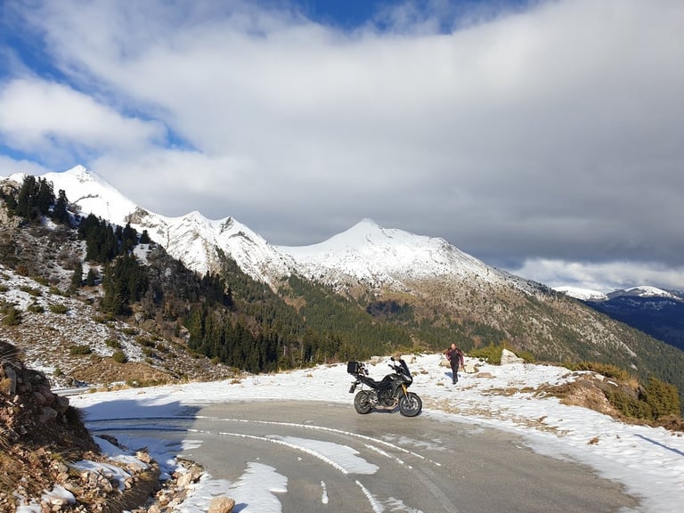 Υπάρχουν μέρες που το ημερολόγιο στον τοίχο γράφει «15 Δεκεμβρίου», η λογική σου ψιθυρίζει να κάτσεις στη ζεστασιά του σπιτιού σου και οι προβλέψεις για τον καιρό στα 2.000 κάνουν την τρίχα να σηκώνεται και την μύτη να κοκκινίζει ακόμη και στη σκέψη. Όμως, αν είσαι μοτοσυκλετιστής, ξέρεις ότι η λογική και η αδρεναλίνη σπάνια πίνουν καφέ στο ίδιο τραπέζι. Εκείνο το πρωί στα Τρίκαλα, ο ήλιος ήταν τόσο λαμπερός που λειτουργούσε σαν "σειρήνα". Κοιτούσαμε με τον Γιάννη την κορυφογραμμή της Πίνδου από μακριά —εκεί που το γαλάζιο του ουρανού ακουμπά το αστραφτερό λευκό του χιονιού— και η απόφαση πάρθηκε σε δευτερόλεπτα: «Πάμε Μπάρο για έναν καραβίσιο?».