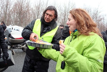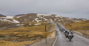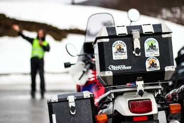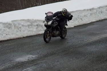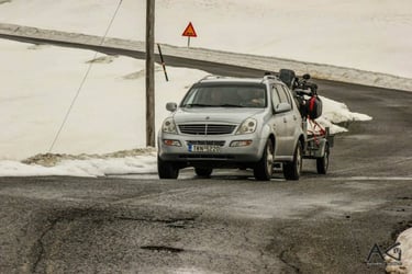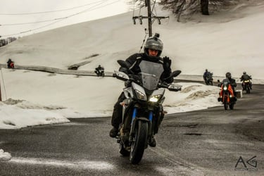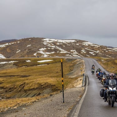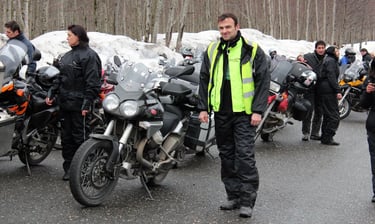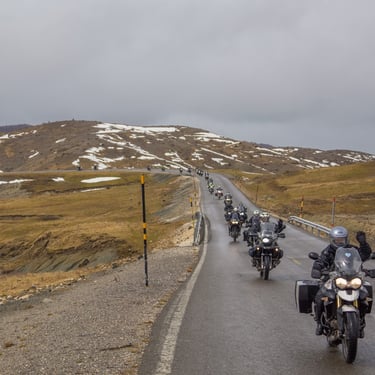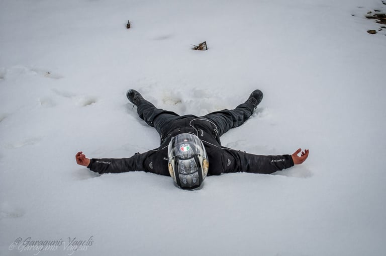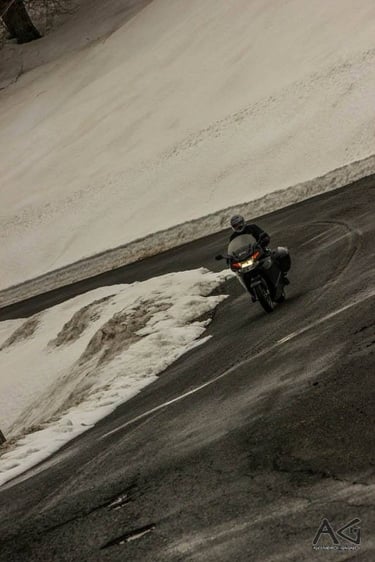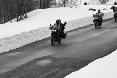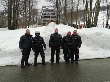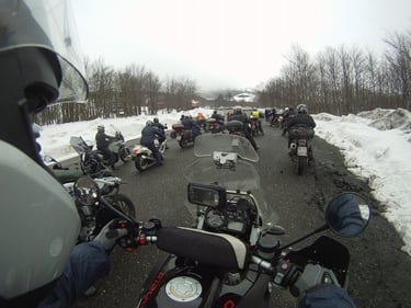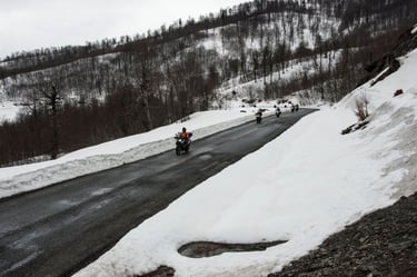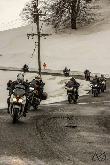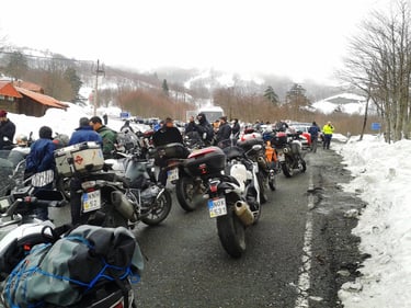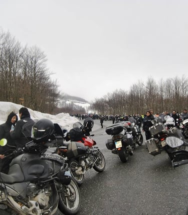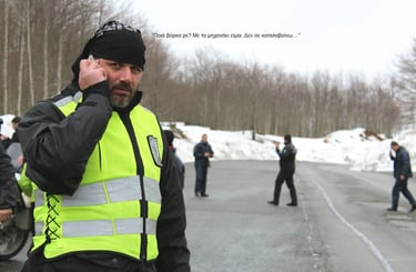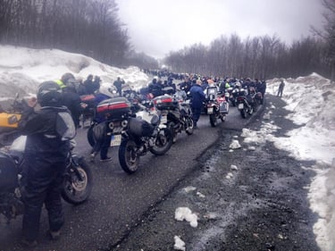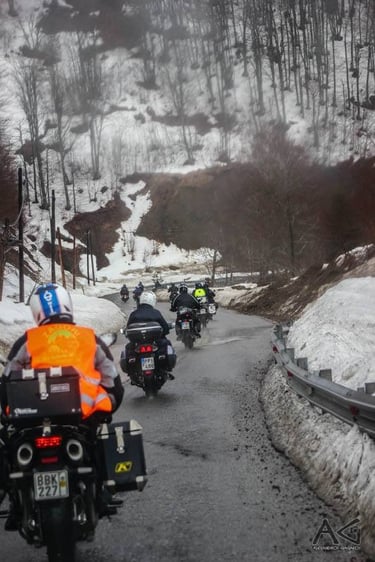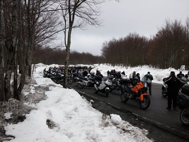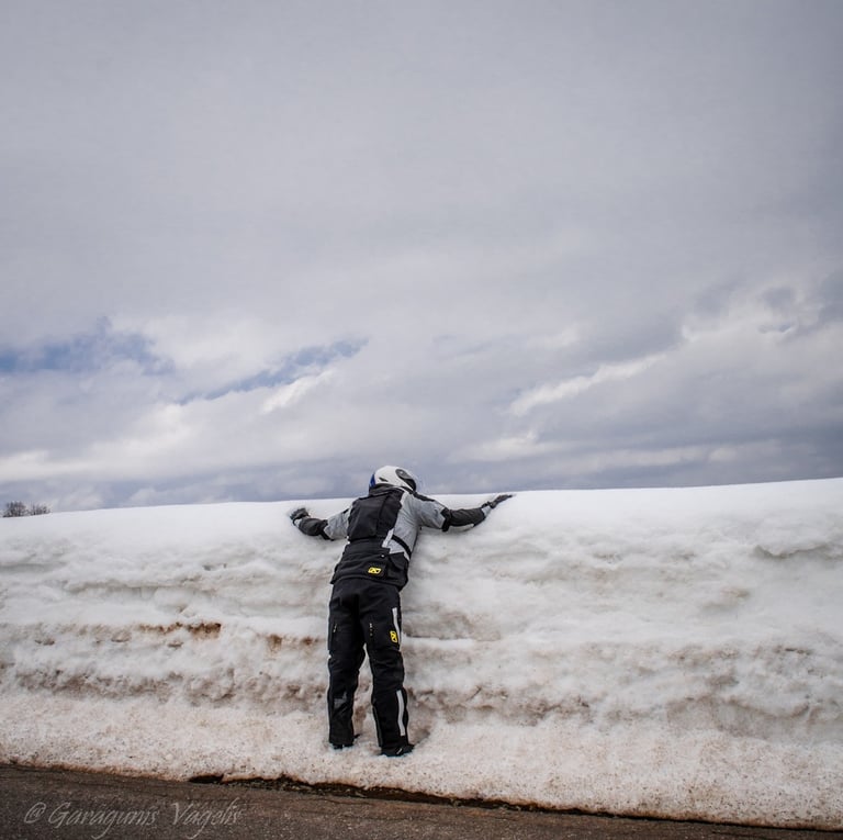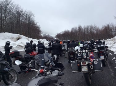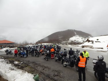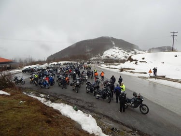 Βρεθήκαμε μπροστά σε ένα δίκτυο κλειστό από τις πυκνές χιονοπτώσεις, όπου το χιόνι είχε παγώσει δημιουργώντας ένα ανυπέρβλητο εμπόδιο. Καταλάβαμε αμέσως ότι το να περάσουν 179 μοτοσυκλέτες από εκεί δεν ήταν απλώς ρίσκο, αλλά μια σίγουρη συνταγή για ταλαιπωρία και πιθανά ατυχήματα. Έτσι, η ασφάλεια υπερίσχυσε του ρομαντισμού, αναγκάζοντάς μας να αναζητήσουμε την επόμενη εναλλακτική λύση.