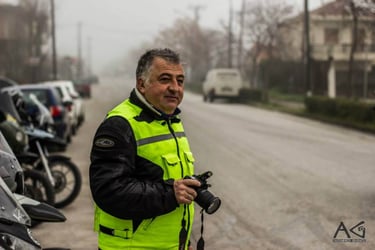 Το τελευταίο μέλος αυτής της παρέας — και αυτός που βρίσκεται αυτή τη στιγμή πίσω από το πληκτρολόγιο. Είμαι ο χρονικογράφος των χιλιομέτρων μας, ο άνθρωπος που σταματά σε κάθε στροφή γιατί το φως «είναι ακριβώς όπως πρέπει» για μια φωτογραφία, και αυτός που προσπαθεί να μεταφράσει τον βρυχηθμό των κινητήρων μας σε λέξεις.