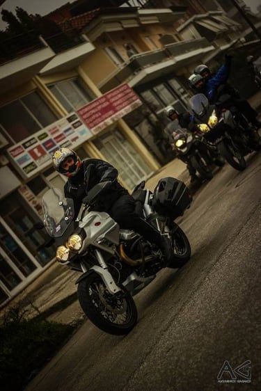 Μια φιλία που χτίστηκε και θωρακίστηκε μέσα από ταξίδια, μικρά και μεγάλα. Σφυρηλατήθηκε μέσα από εσωτερικά αστεία — όπως ο διαβόητος κανόνας μας "θα έχουμε επιστρέψει μέχρι τις 5:00 το απόγευμα", τον οποίο δεν καταφέραμε να τηρήσουμε ούτε μία φορά, επιστρέφοντας συνήθως στη βάση μας αρκετές ώρες αργότερα. Δυναμώσαμε μέσα από τις αντιξοότητες που αντιμετωπίζουμε στις βόλτες μας και μέσα από την αλληλοϋποστήριξη που προσφέρουμε ο ένας στον άλλον, ακόμα και σε θέματα που ξεπερνούν τη μοτοσυκλέτα — στις δυσκολίες της απαιτητικής καθημερινότητάς μας.