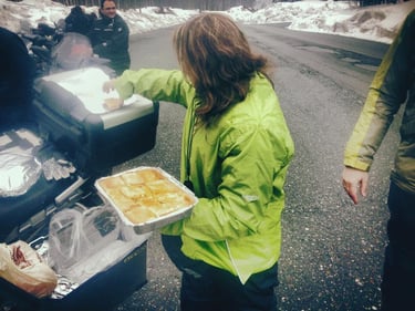 Μετά ήρθε ο σχεδιασμός για το «Μεγάλο Σάββατο». Έπρεπε να κανονίσουμε ένα δείπνο που θα μπορούσε να χορτάσει μια μικρή στρατιά πεινασμένων αναβατών και να βρούμε έναν κατάλληλο χώρο για τη βραδινή εκδήλωση που είχαμε οραματιστεί. Δεν ψάχναμε απλώς για κρεβάτια· χτίζαμε ένα «στρατηγείο» για μια νύχτα.