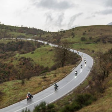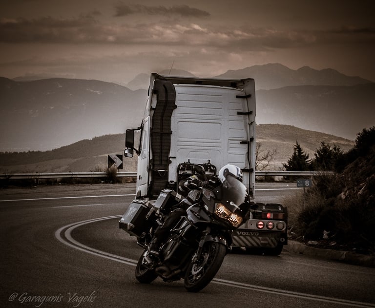Για αρκετά χιλιόμετρα, τα μάτια μου ακολουθούν την κορδέλα από κίτρινο και λευκό φως που σχηματίζουν δεκάδες μοτοσυκλέτες. Μέχρι και την τελευταία στροφή, βλέπω τον χορό αυτών των δίτροχων καλλονών πάνω στη σκηνή των Ηπειρωτικών βουνών. Ένας χορός αργός, νωχελικός, σχεδόν ερωτικός...