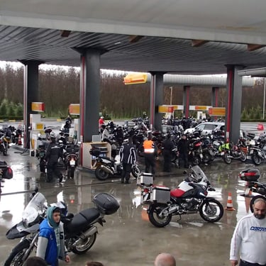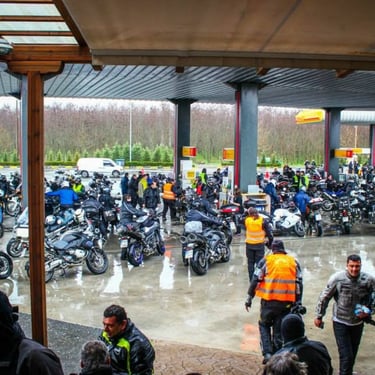 Επόμενος σταθμός, η μεγάλη στάση στο πρατήριο Strada, λίγο πριν τα Γρεβενά. Πλησιάζοντας, το θέαμα ήταν εξωπραγματικό – ακόμα και για εμάς που το οργανώναμε. Δεκάδες μοτοσυκλέτες ήταν ήδη εκεί, παρατεταγμένες, περιμένοντας να ενσωματωθούν στο καραβάνι. Ήταν το επίσημο σημείο συνάντησης με τα παιδιά από τη Βόρεια Ελλάδα.