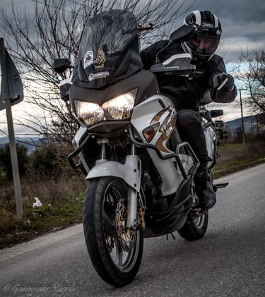 Το μικρό άνοιγμα της ζελατίνας του κράνους μου είναι αρκετό για να αφήσει τις εικόνες, τους ήχους και τις μυρωδιές να εισβάλουν με ορμή, αγκαλιάζοντας την ψυχή και το μυαλό μου — παρασύροντας όλα τα «πρέπει» και τα «φαίνεσθαι» μιας μίζερης καθημερινότητας.
