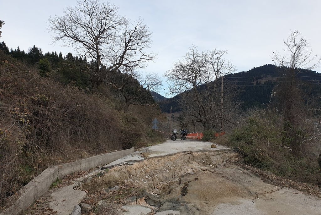 Emerging from the tunnels offered no relief. As we climbed toward the Argithea Mountain Pass, the earth proved its restlessness. We found the road severed—the asphalt had simply surrendered to the ravine below, leaving nothing but a jagged edge of broken dreams. A thin strip of orange safety mesh was the only thing standing between us and a three-hundred-foot drop.