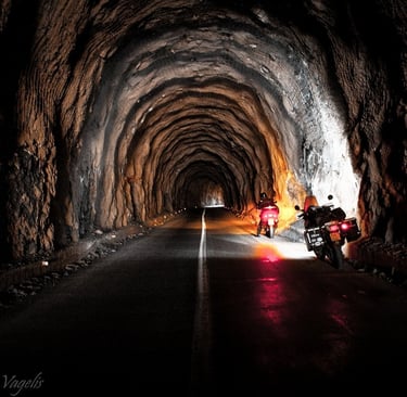 The road eventually led us toward the abyss: the Sykia Tunnels, known to those who fear them as the Throat of the Devil. But these are not ordinary roads; they are the scars of a monumental failure.