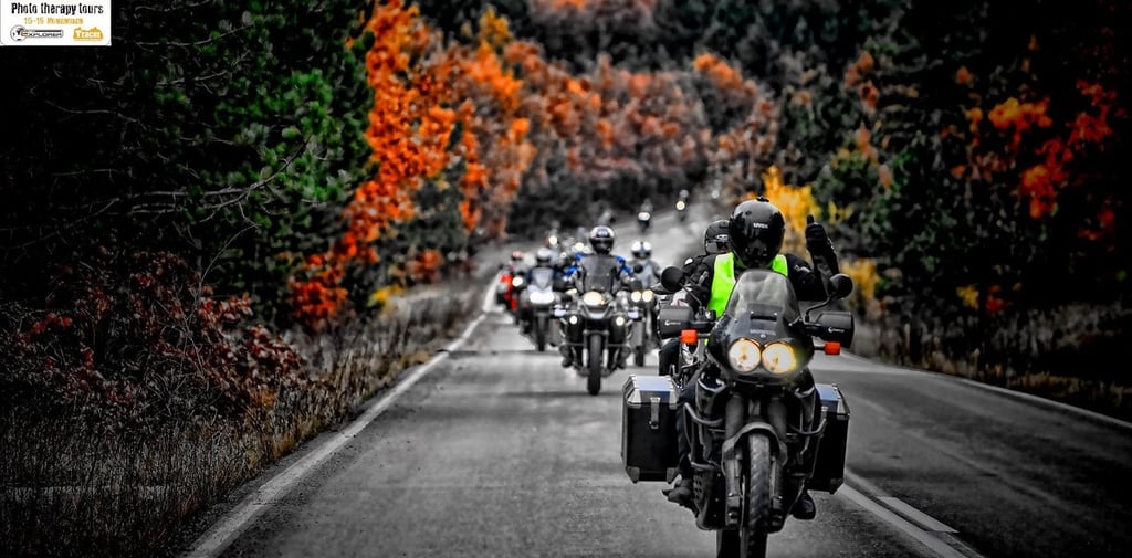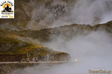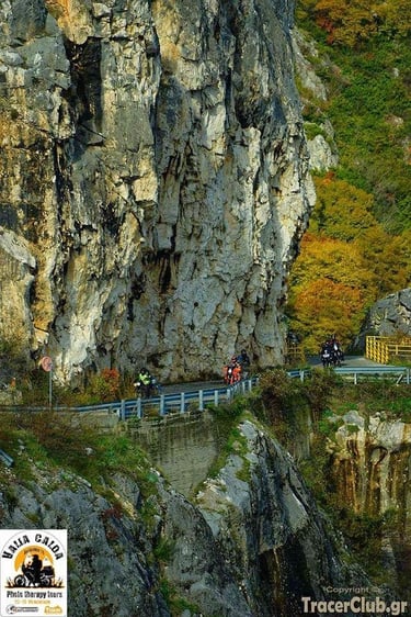 By now, our tribe was complete. The spirit was high, the engines were warm, and the road to Vovousa lay ahead—a journey through the heart of Valia Calda via the asphalt ribbon that cuts through the wilderness. On that Saturday, the valley truly earned its name; Valia Calda, the Warm Valley. The temperatures were an unexpected gift for the season, a gentle heat that radiated from the earth. A few scattered clouds drifted above—the perfect 'soft box' for our lenses, creating the dramatic shadows and depth we needed to capture the masterpieces on our camera screens. The sun didn't just shine; it caressed our faces with a golden touch.