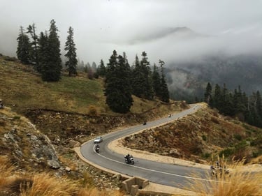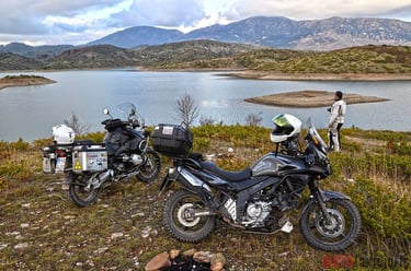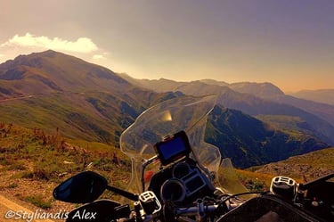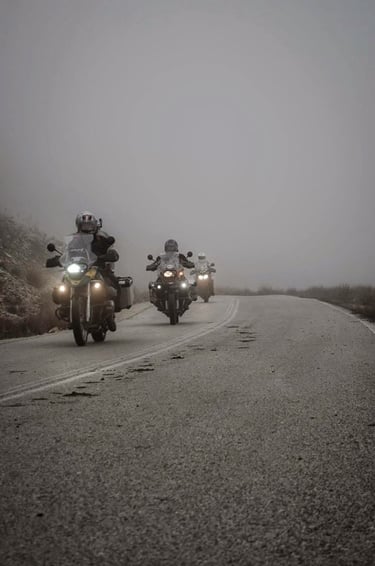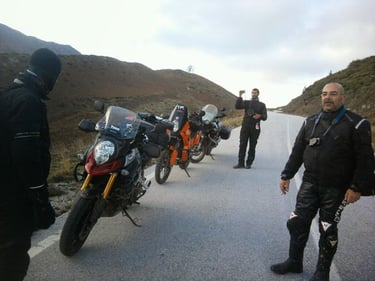 And that’s where the magic truly began... The roads were nearly empty, ours for the taking. The weather felt like a whisper of Spring, and the Greek mountains stood tall before us, ready to host 90,000cc of raw power within their twisting, labyrinthine passes.