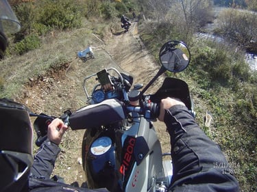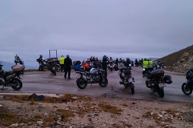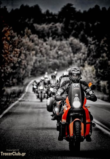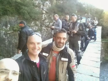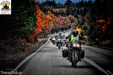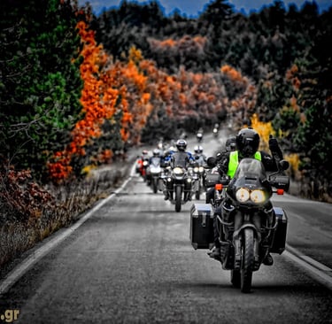 Just before reaching Krania, we regrouped. Ninety riders, yet we moved as one—a single, breathing organism. I asked myself: How is this possible? Usually, large groups are dangerous, chaotic, and demanding. It requires profound respect for the traveler beside you. And yet, there we were—one soul, one group. I have never experienced anything like it; the sight was purely cinematic, a rhythmic dance of steel and spirit.