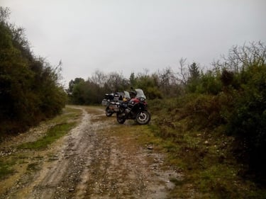 In Krania, we fueled our machines, then pushed onward toward Spilaio. The higher we climbed, the more the earth seemed to transform into a gallery of natural art. The climax was the road carved directly into the living rock—a stone throat that swallowed us whole just before we reached the village. The village square was small, but its heart was vast. Friends from Northern Greece had already whispered of our arrival, and the locals welcomed us with open arms.