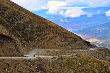 As we climbed higher, the landscape surrendered to a fever of color. It was as if a painter had pressed his brush firmly against the canvas of the earth, intentionally bleeding the yellows, the oranges, the deep reds, and the vibrant greens into the infinite blue of the sky. Every turn revealed a new frame; we were watching an unedited masterpiece of a period film, a private screening where the wind was the soundtrack and the peaks were our only witnesses.