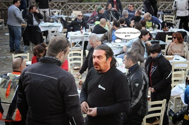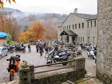 We reached the Acheloides Hotel around 7:00 PM. Our hostess, Ms. Eleni, was the definition of hospitality, settling everyone into their rooms before serving a feast. The courtyard was overflowing with motorcycles from every corner of Greece. In the rooms, in the gym, even in tents on the grass—all of Greece was there, one big family under the stars."