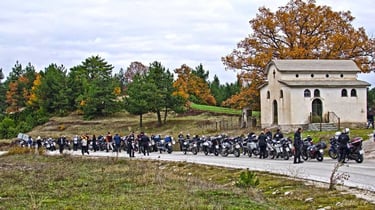 Then, I witnessed one of the most beautiful sights of my life: Dozens of motorcycles winding down the rugged, treeless slopes of the Pindus. From high above, the trail of moving lights against the dark rock was breathtaking—a constellation of stars descending the mountain.