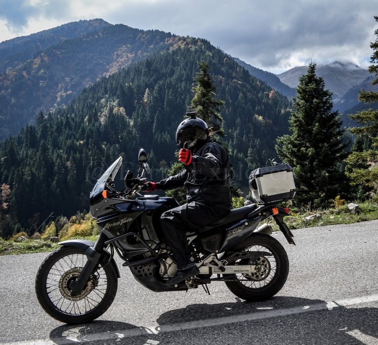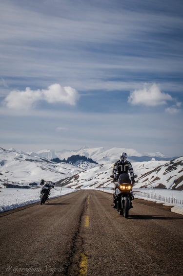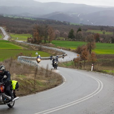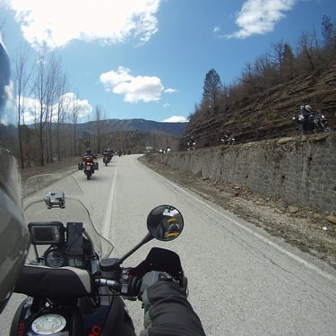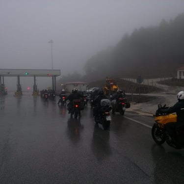 We had marked this exact spot for a photography and smoke break during the upcoming odyssey—a chance for 179 riders to soak in the majesty of the Pindus range. Unfortunately, as we would soon discover, the mountains had a different itinerary for us. When the actual day came, the rain and biting cold turned this 'photo-op' into a battle for endurance, forcing us to keep moving.