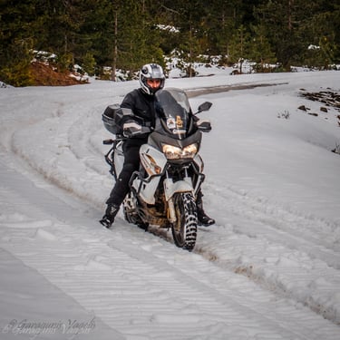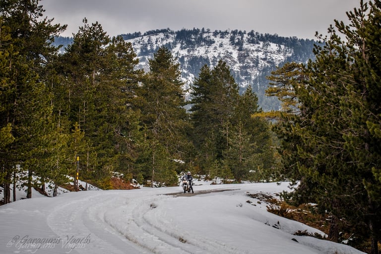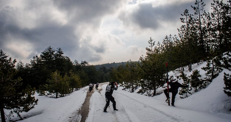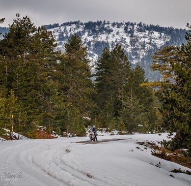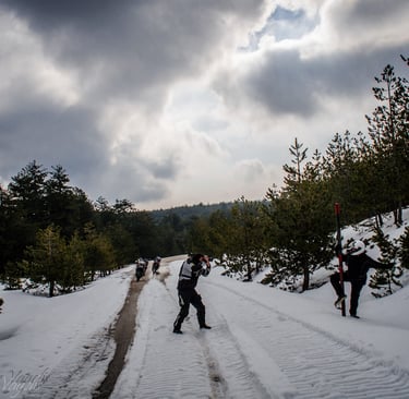 "The Metsovo Plateaus during our reconnaissance. Here, the snow was no longer an obstacle but a masterpiece. The view of the white peaks was so breathtaking that we actually caught ourselves wishing the snow wouldn't melt before the official event.