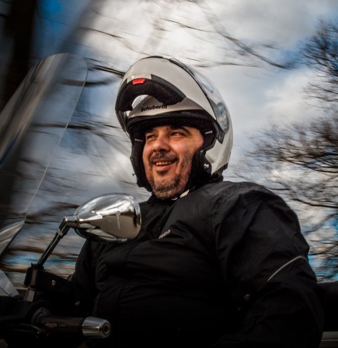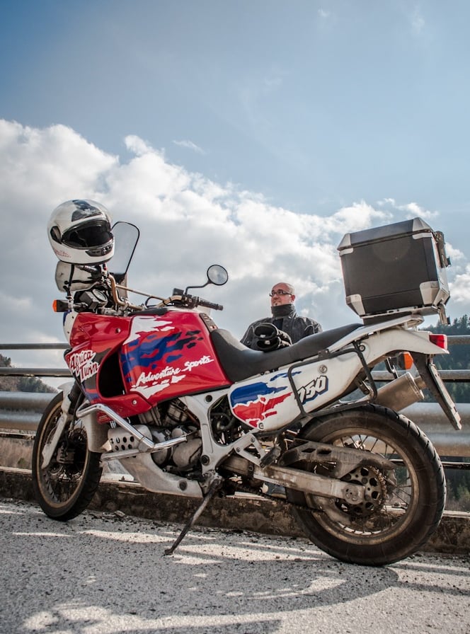If I had to describe this man in two words, they would be 'Good Soul.' Always smiling, selfless, and the first to offer help before you even ask. However, he has one minor 'glitch': a total lack of understanding when it comes to distances. 960 kilometers in a single day? To him, that’s just a quick warm-up. His weapon of choice is a Caponord fitted with Remus exhausts—a combination that sounds like a thunderstorm.Note to self: From now on, you’re riding at the very back of the pack whenever we enter a tunnel. Do you hear us, or has that exhaust already taken your hearing? :P