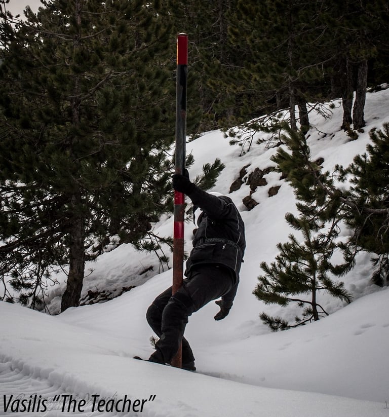 Amidst the snow and the uncertainty, Vasilis Theodorou decided to lighten the mood. Showing off some 'flawless' style on a nearby pole, he proved that even at sub-zero temperatures, the spirit of the crew remains untouchable.
